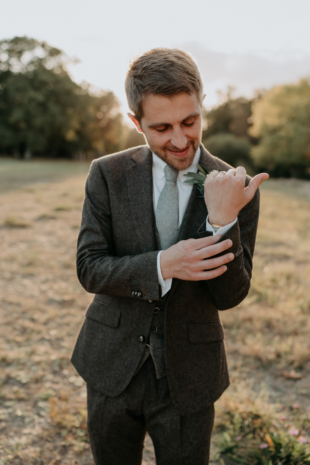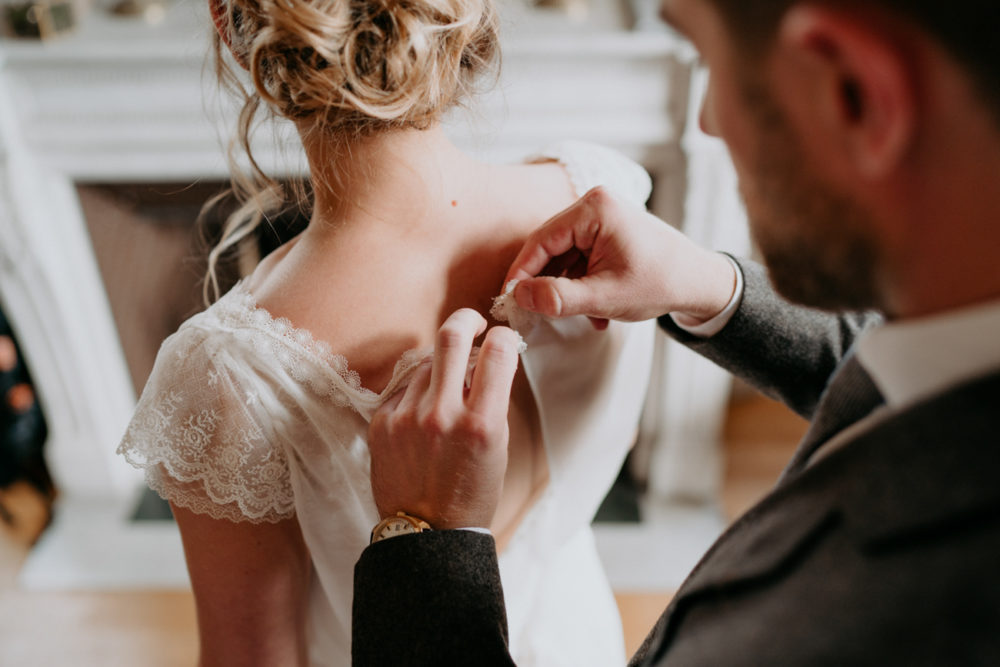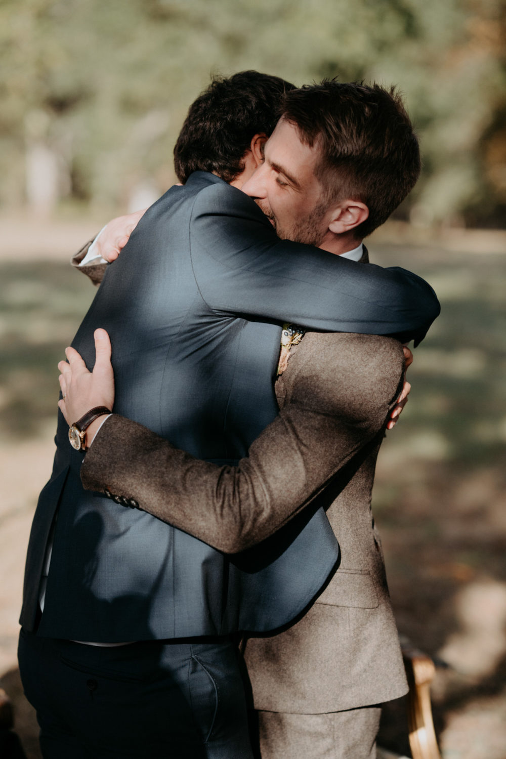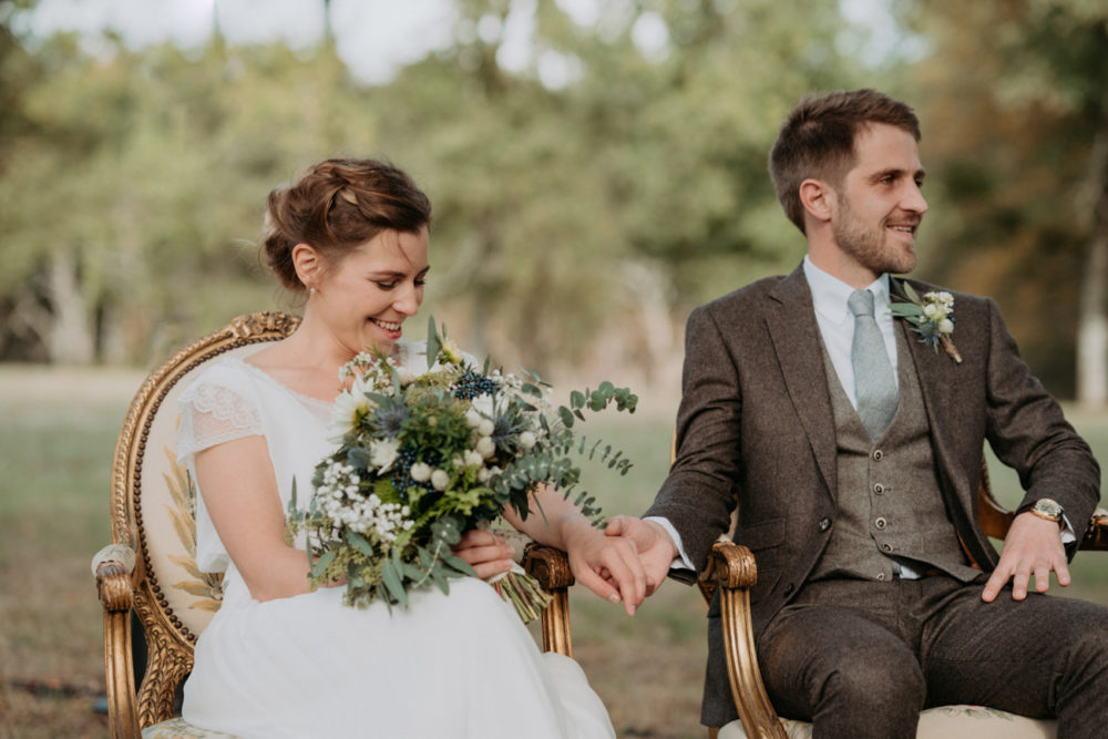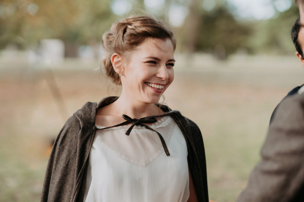 Leur préparation en début d'après midi nous as tous mis dans le bain : pas de chichis, beaucoup de rire et encore plus d'impatience ! Le marié qui habille la mariée, on aime non ? Pourquoi forcément être séparés à ce moment du Jour J ? J'ai tout simplement adoré cet instant de complicité entre eux deux. Ce que j'ai tout de suite aimé chez C&B c'est leur naturel et leur envie de casser les codes ! Et c'est ce qu'ils ont fait avec leur cérémonie laïque en pleine nature sous un arbre magnifique. La cérémonie commence par un conte retraçant leur histoire et reflétant l'ambiance "forêt" & mystique de la journée. Que j'aime découvrir l'histoire du couple pendant les cérémonies laïques, je capte les émotions qui découlent de ses souvenirs, les rires et les larmes qui s'en suivent. Et parfois (souvent) je suis tout aussi émue il faut bien le dire !