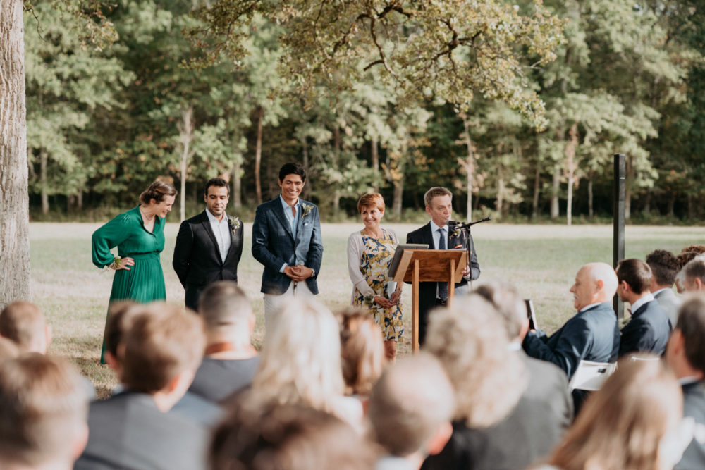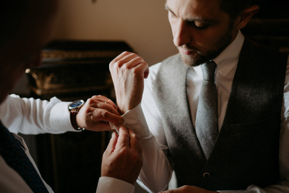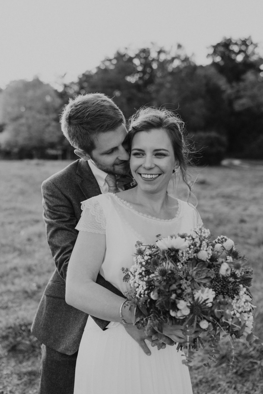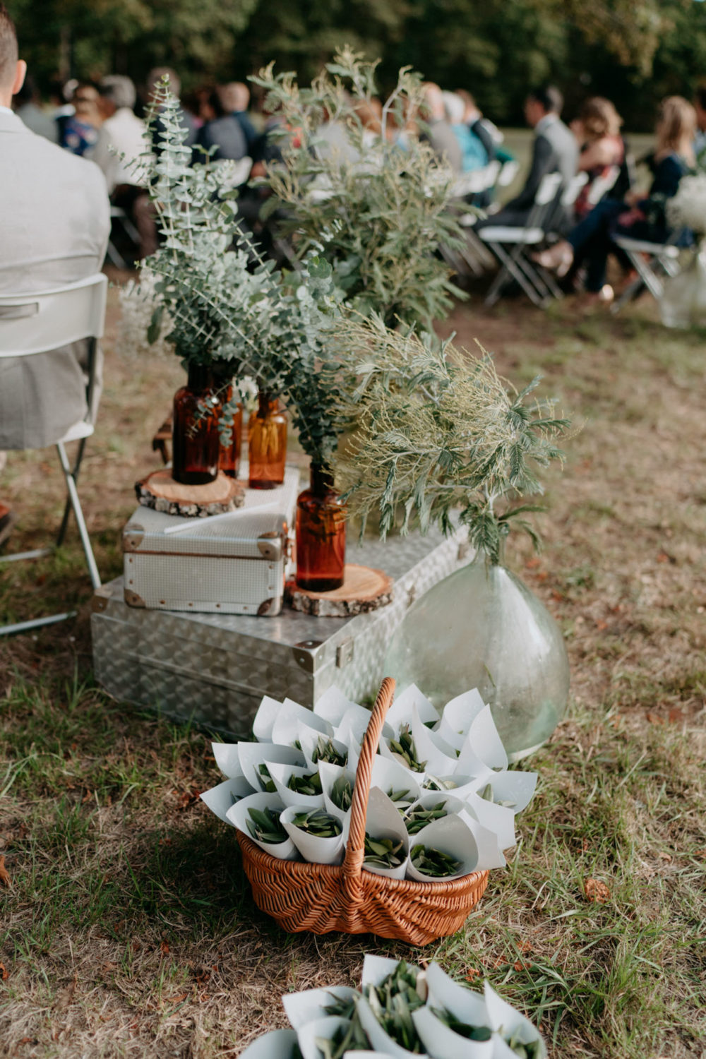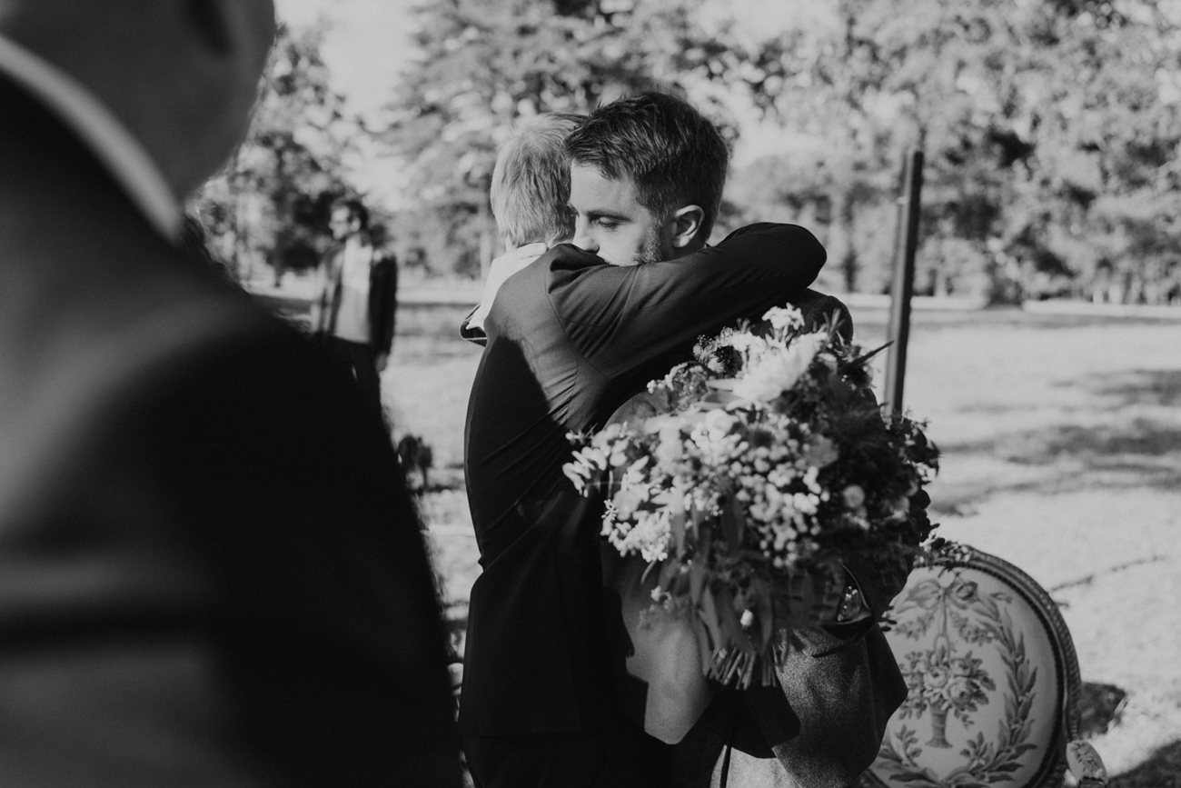 Leur préparation en début d'après midi nous as tous mis dans le bain : pas de chichis, beaucoup de rire et encore plus d'impatience ! Le marié qui habille la mariée, on aime non ? Pourquoi forcément être séparés à ce moment du Jour J ? J'ai tout simplement adoré cet instant de complicité entre eux deux. Ce que j'ai tout de suite aimé chez C&B c'est leur naturel et leur envie de casser les codes ! Et c'est ce qu'ils ont fait avec leur cérémonie laïque en pleine nature sous un arbre magnifique. La cérémonie commence par un conte retraçant leur histoire et reflétant l'ambiance "forêt" & mystique de la journée. Que j'aime découvrir l'histoire du couple pendant les cérémonies laïques, je capte les émotions qui découlent de ses souvenirs, les rires et les larmes qui s'en suivent. Et parfois (souvent) je suis tout aussi émue il faut bien le dire !