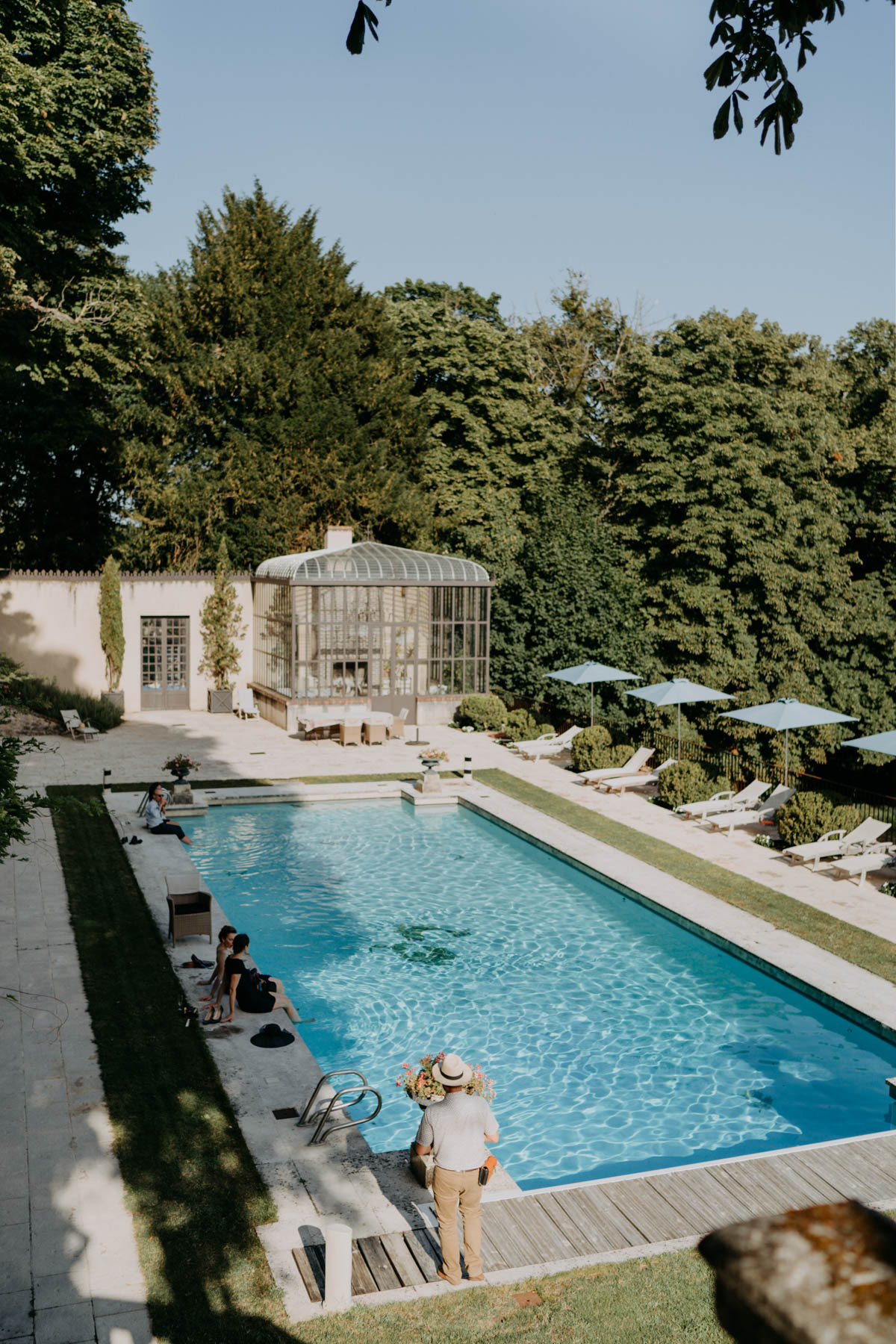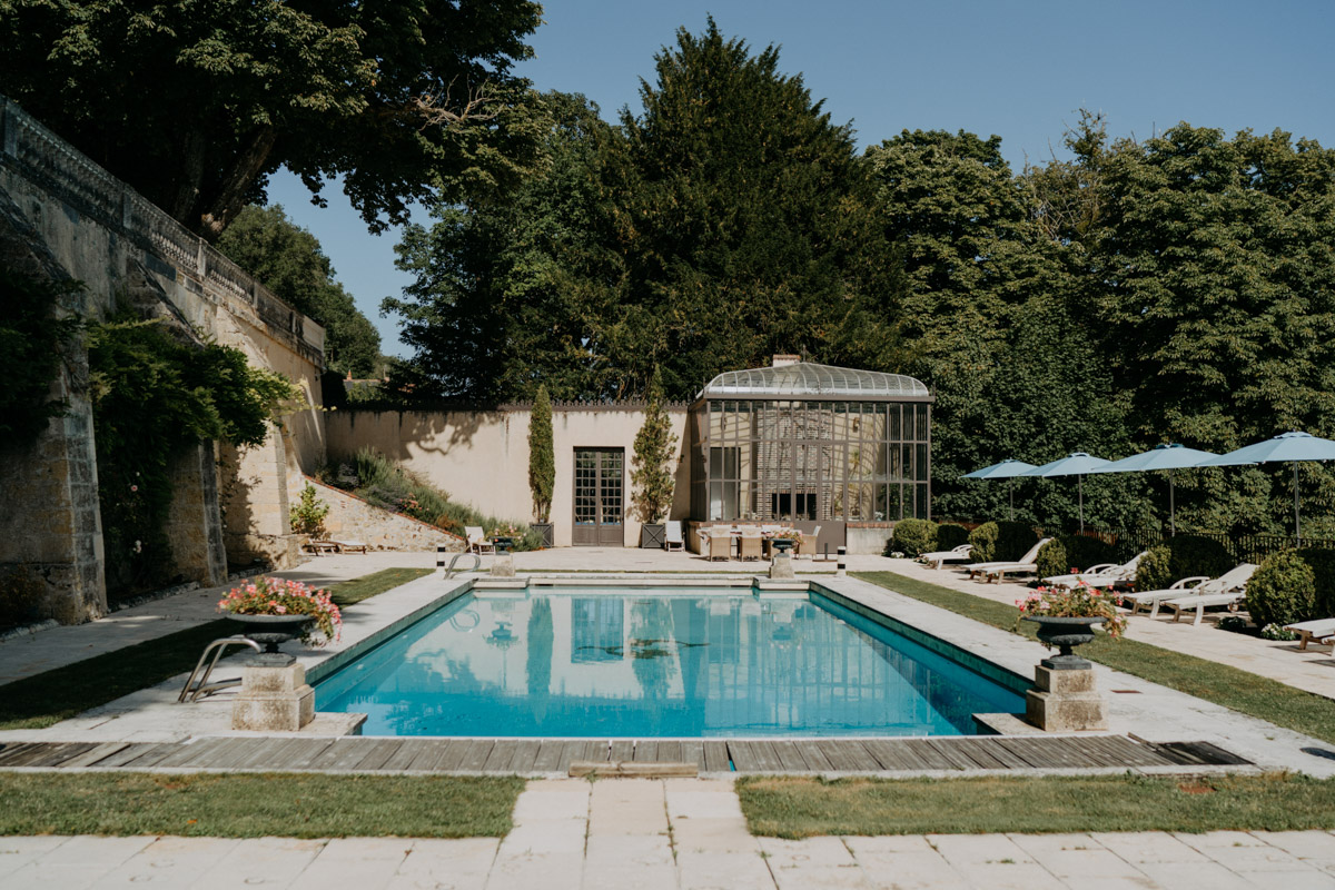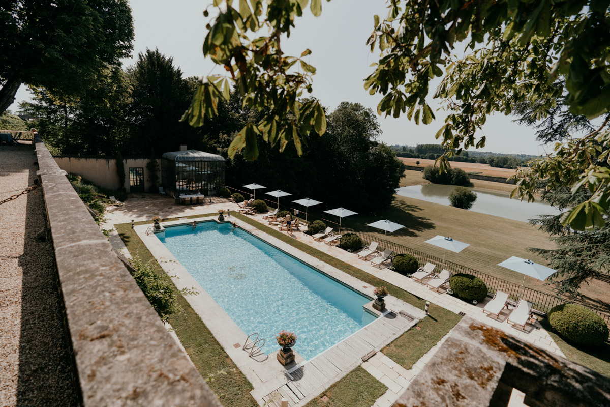 Aujourd'hui, c'est un beau mariage au Domaine des Bidaudières, près de Tours, que je vous emmène. Après un mariage franco-suédois, je vous parle cette fois-ci d'un mariage franco-anglais dans un des lieux de réception que j'aime le plus en Touraine. J'ai eu la chance de découvrir le Domaine des Bidaudières situé à Vouvray, dès mon arrivée dans la région pour une très belle cérémonie laïque. Depuis, je réalise un reportage mariage par an en moyenne dans ce lieu plein de charme. De l'allée principale cernée de vignes, jusqu'à la piscine surplombant le parc en passant par sa verrière lumineuse et végétale, c'est un régale pour la photographe que je suis. Le parc (avec un lac !) est simplement superbe et il offre de belles possibilités pour les mariés. Pour V&B, c'était donc le lieu qui collait parfaitement à l'ambiance de leur mariage : élégant & chaleureux. D'ailleurs la chaleur n'a pas manqué... nous étions en pleine canicule 😉 !