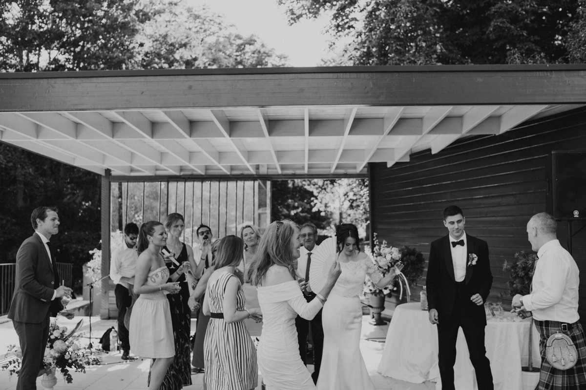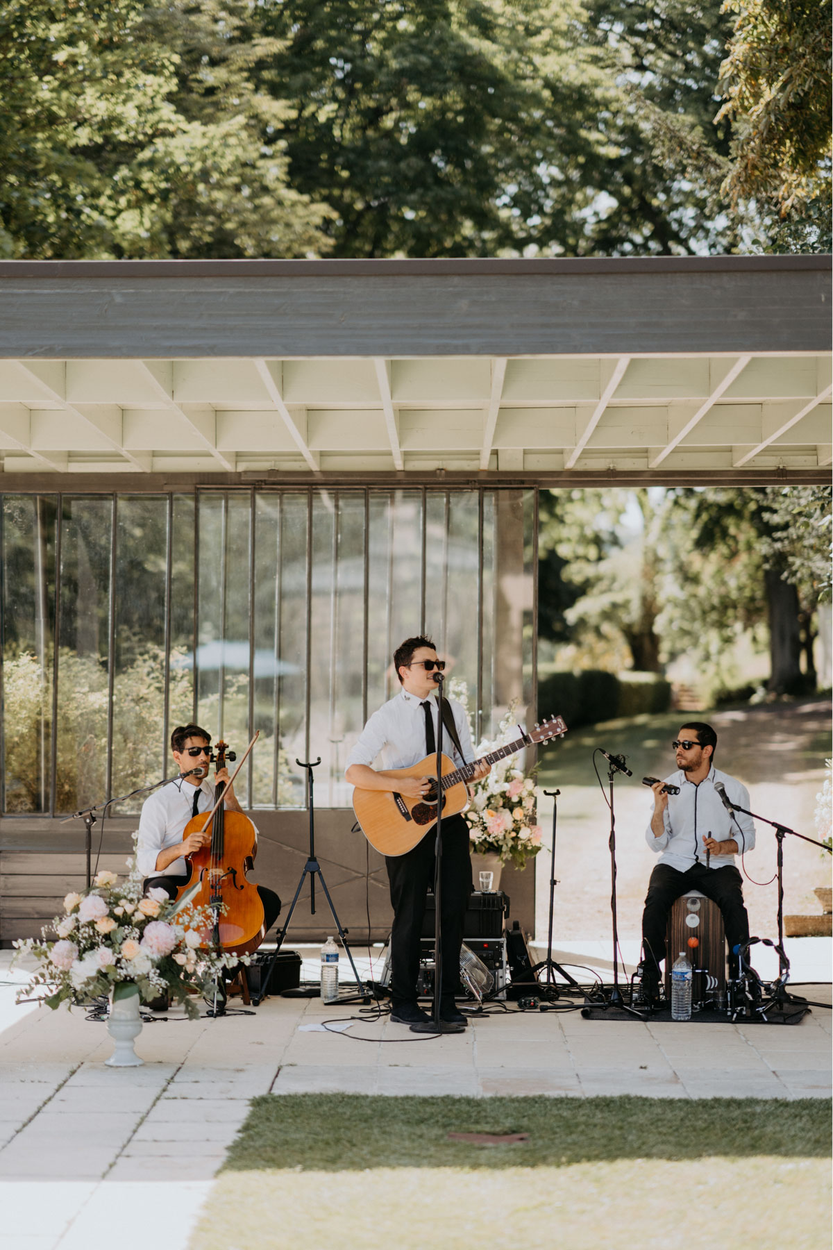 Pour leur mariage au Domaine des Bidaudières, malgré la chaleur, l'ambiance festive n'a pas quitté la journée. Le vin d'honneur s'est déroulé tout en musique et en danse grâce au groupe Apollo Fish ! Quelle bonne idée d'inviter un groupe pendant le cocktail, c'est l'assurance de faire plaisir à vos invités et aussi de faire tomber toutes les barrières.
