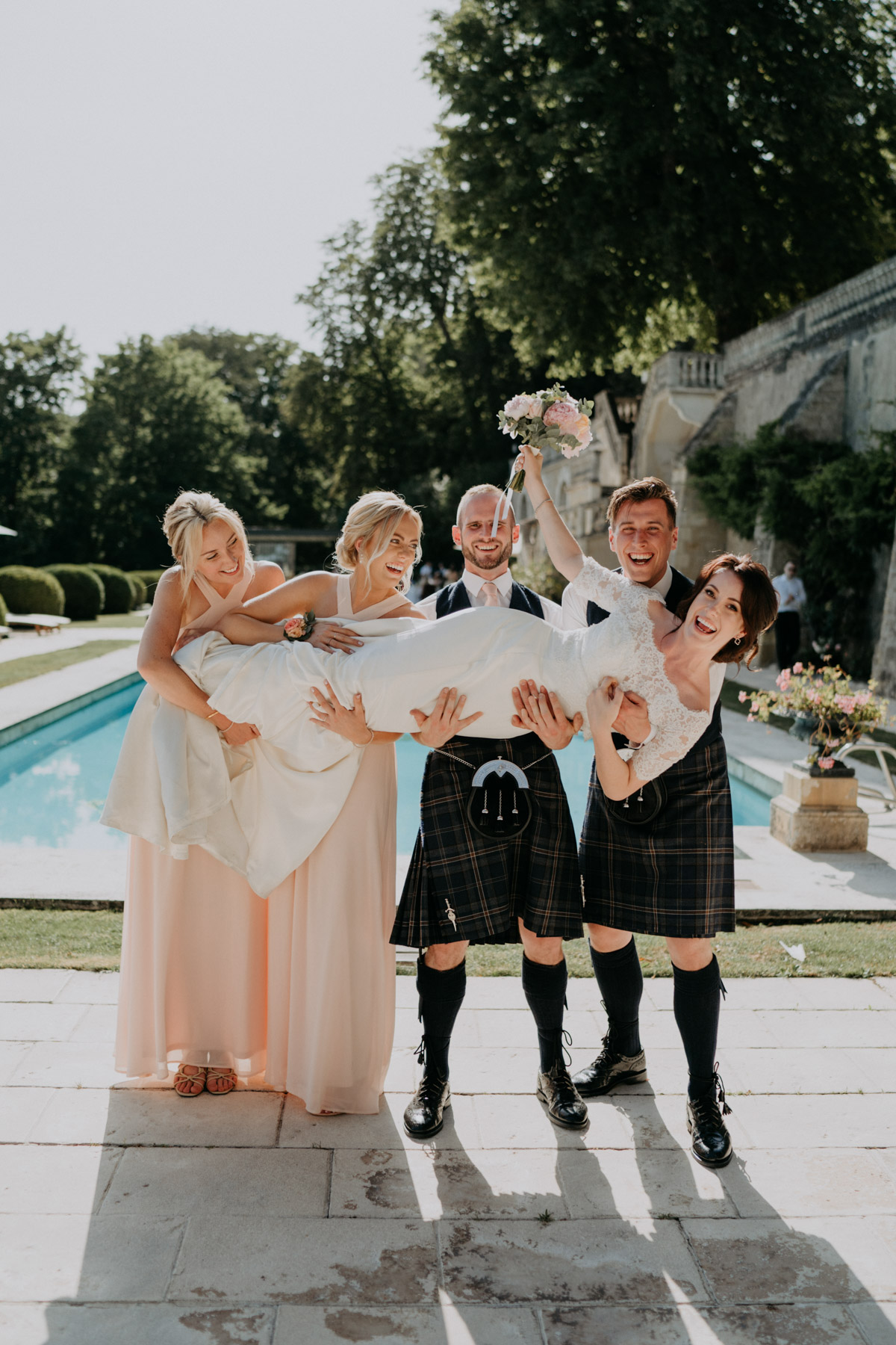 S'il y a une chose que je retiens de cette journée, c'est sans aucun doute la convivialité et le mélange des traditions. Des invités venant de France, d'Angleterre, d'Ecosse et j'en passe. Mais qui dit famille écossaise dit... Kilt ! Je rêvais d'un mariage traditionnel écossais, grâce à V&B j'en ai eu un petit aperçu héhé ! Les rumeurs sur le kilt n'étant donc pas des rumeurs... (preuve à l'appui, mais cette photo restera secrète ;)) !