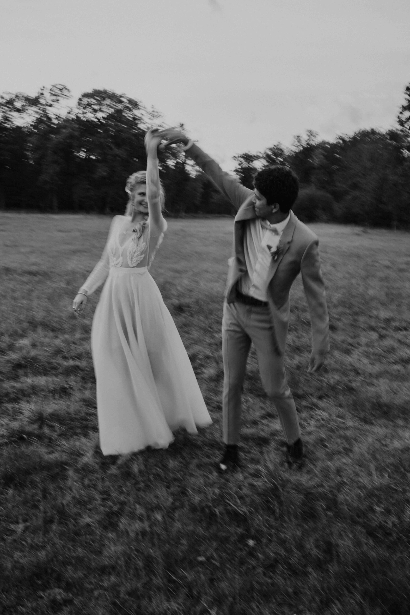 Une danse de mariage en extérieur au coucher du soleil en Bretagne