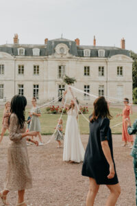 Moment spontané de rire partagé entre la mariée et ses invités dans le Morbihan