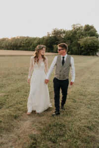 Les regards complices des mariés pendant une cérémonie intime en Bretagne