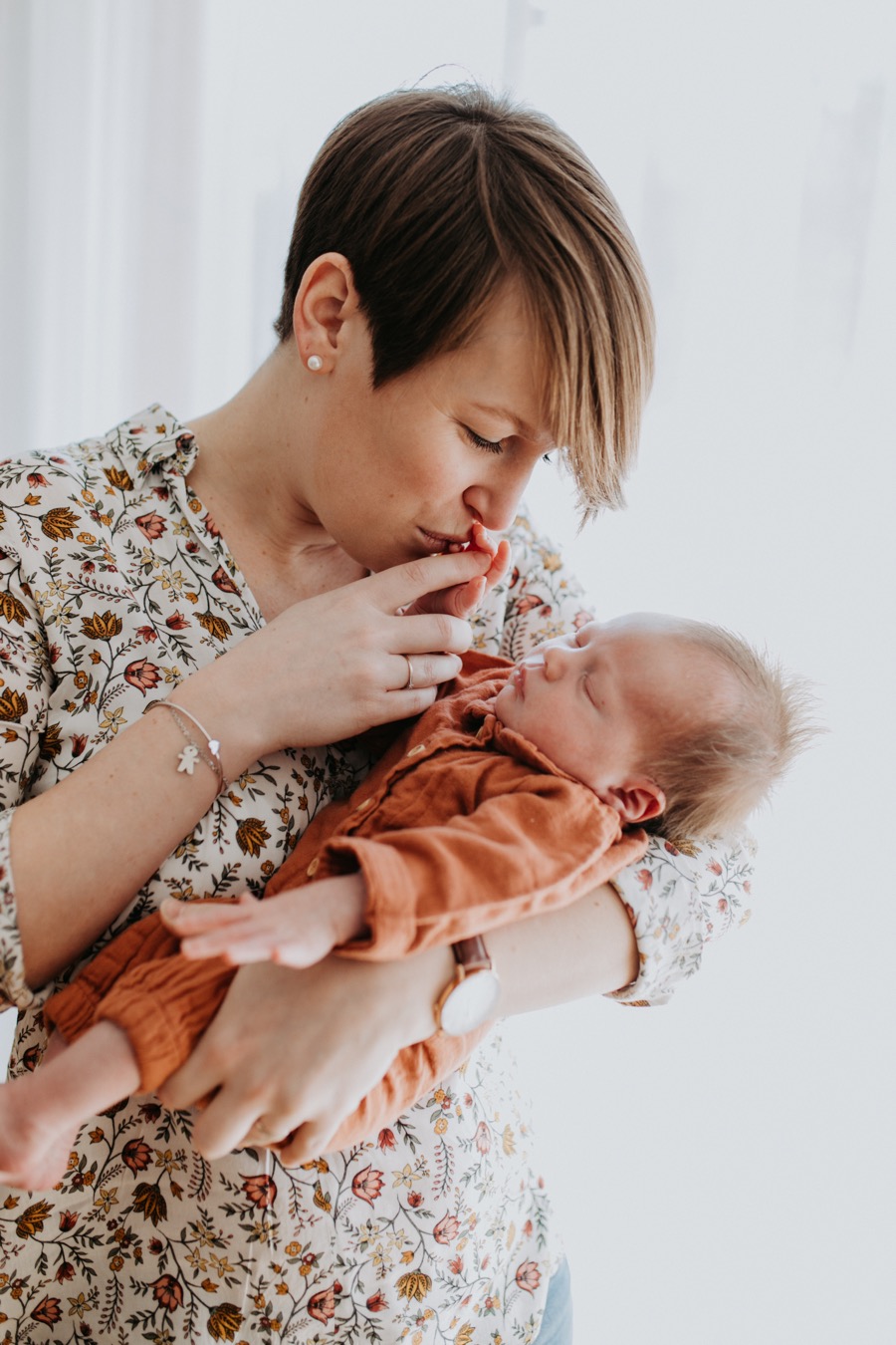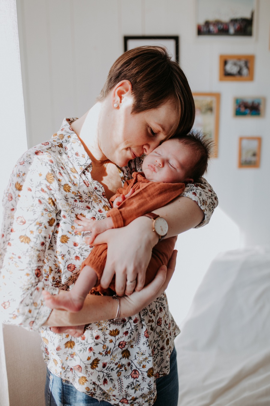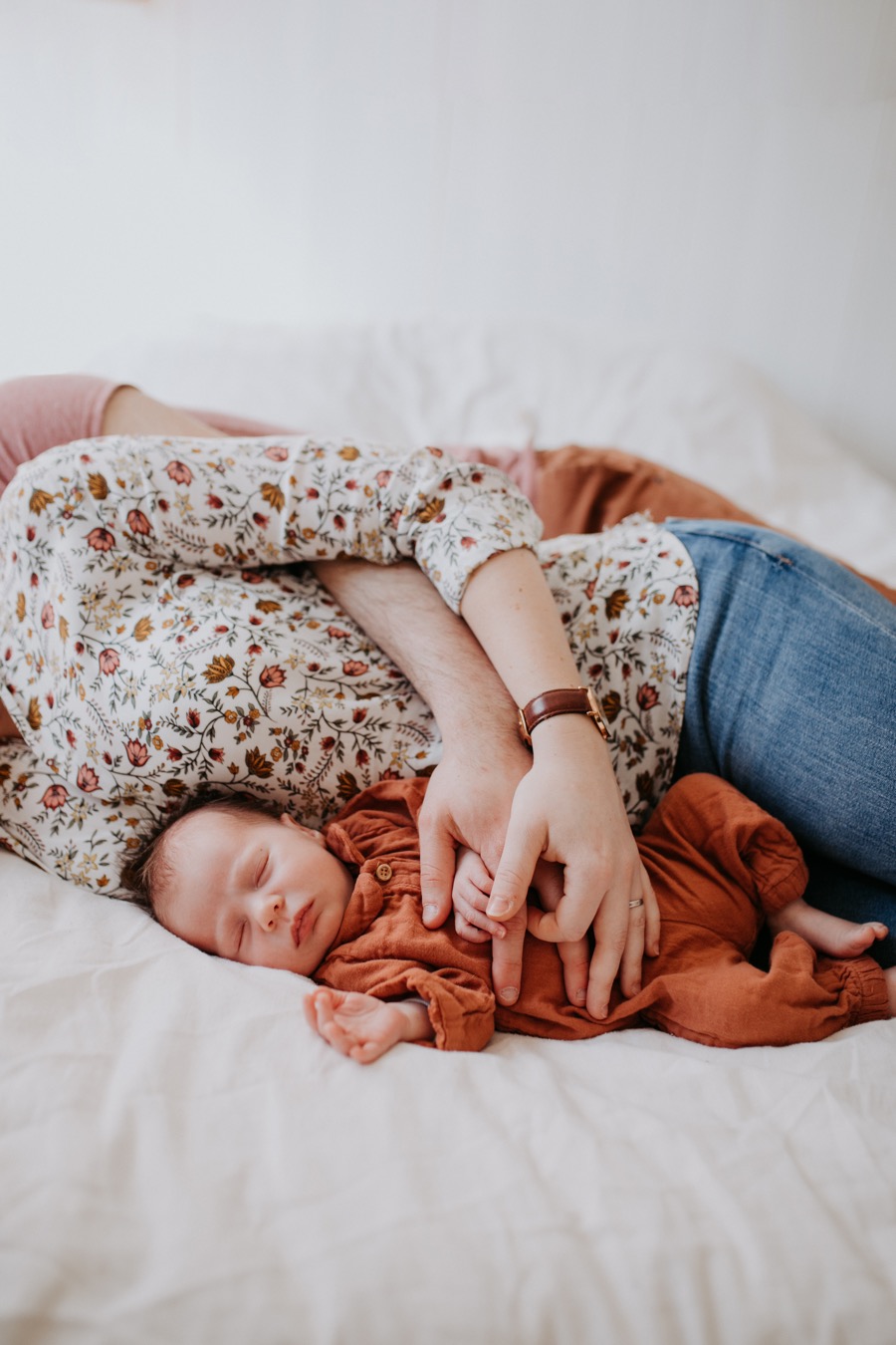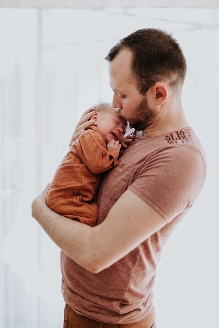 Contrairement aux photos de grossesse, toutes les séances naissances se font à l'intérieur, N'ayant pas de studio photo, je me déplace au domicile des parents. C'est donc chez eux, que j'ai eu le plaisir de trouver C&J et de rencontrer leur adorable petit garçon ! Une séance photo chaleureuse et toute en douceur. Encore une fois, tous les détails étaient soignés pour une jolie harmonie. Et en prime, on a terminé les photos avec les t-shirt canons signés Émoi Émoi !