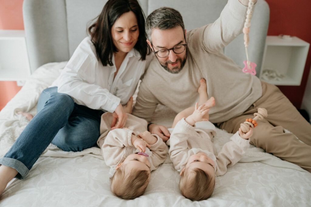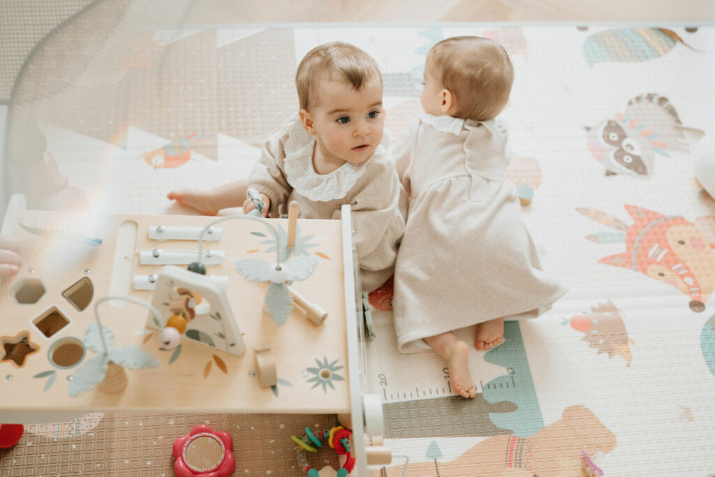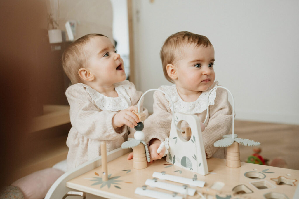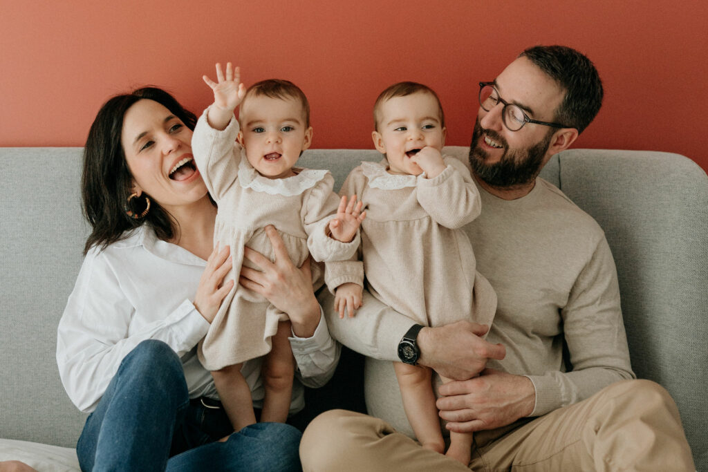 Leur envie était claire : immortaliser le premier anniversaire de leurs jumelles, chez eux, dans leur univers. Une séance naturelle, spontanée, intime.