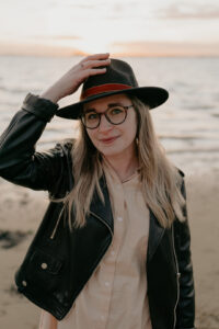Amoureux posant devant un coucher de soleil doré à Séné.