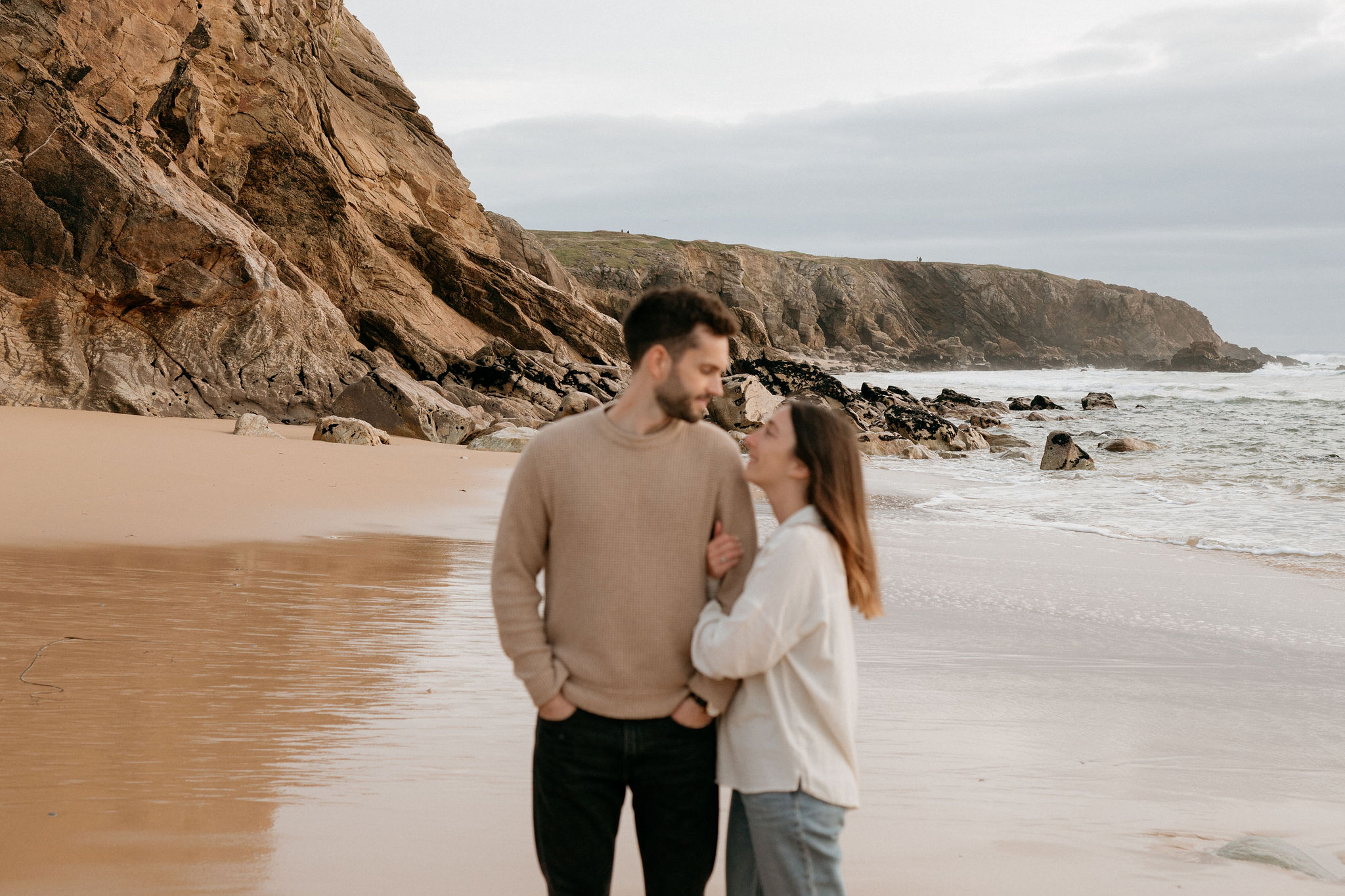 Photographe à Vannes capturant un couple sur la Côte Sauvage de Quiberon.