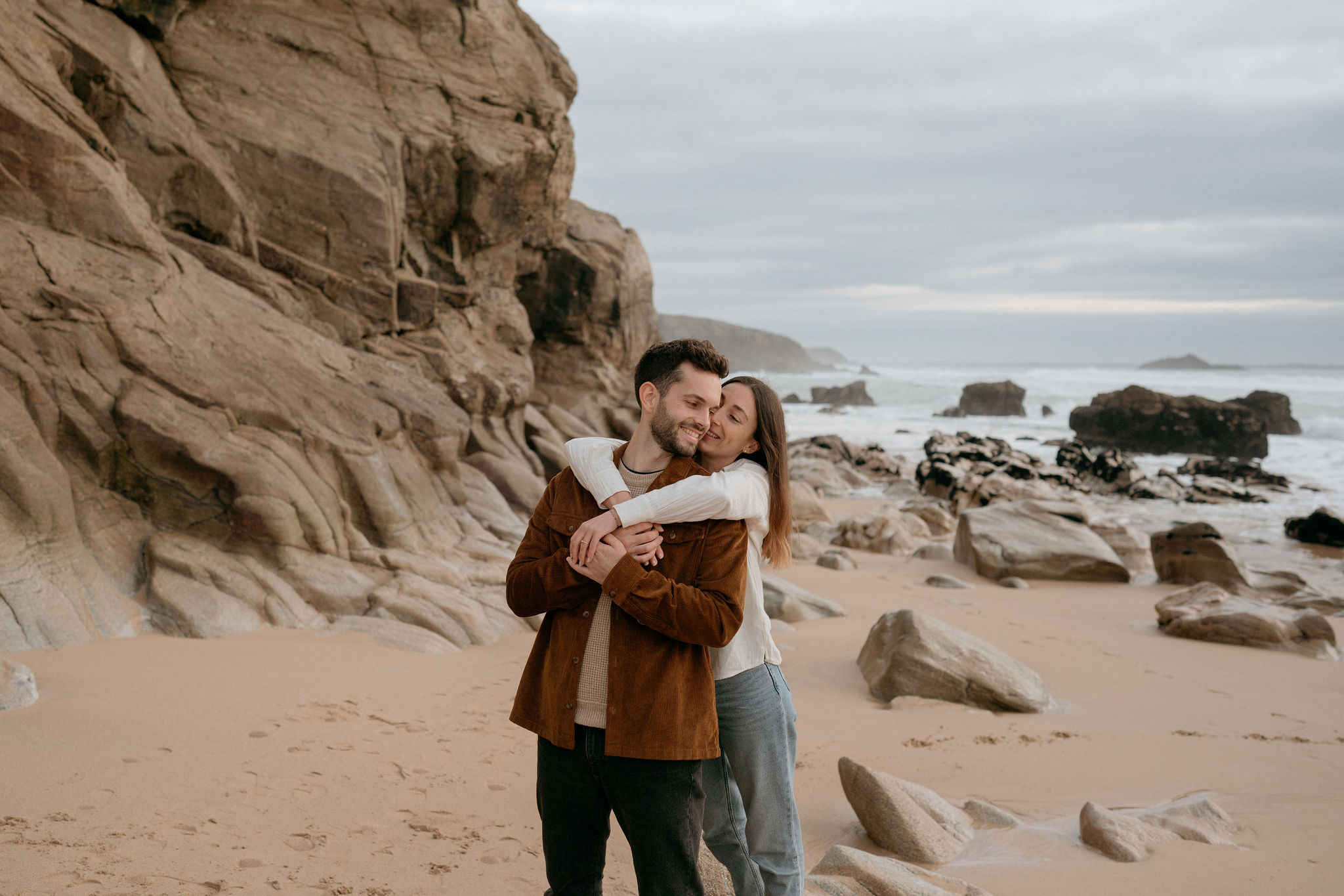 Paysage breton avec un couple photographié sur les rochers de Quiberon