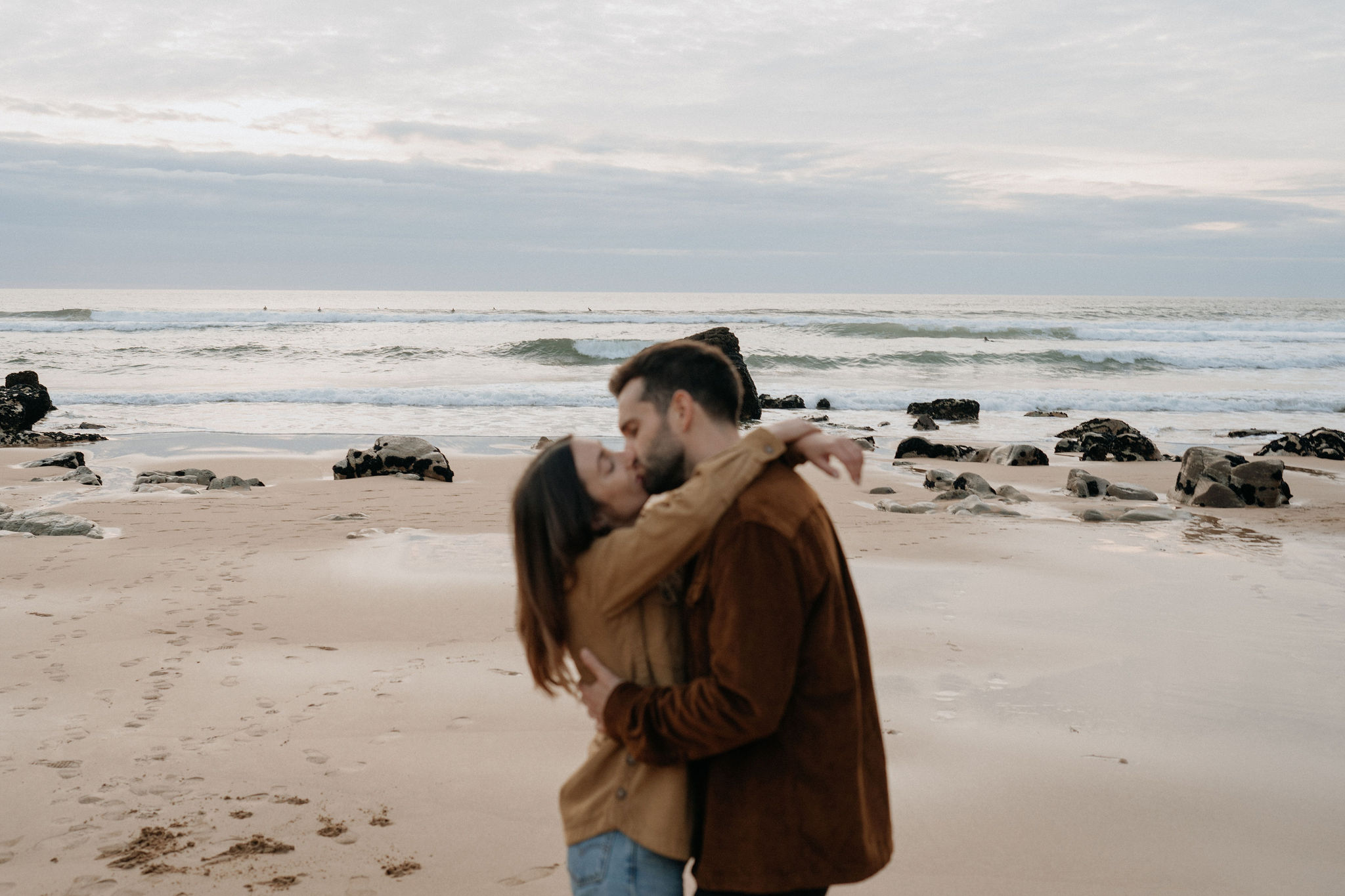 Soleil couchant sur la Côte Sauvage, avec un couple romantique en Bretagne