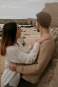 Portrait complice sur les rochers de Quiberon, capturé par une photographe bretonne.
