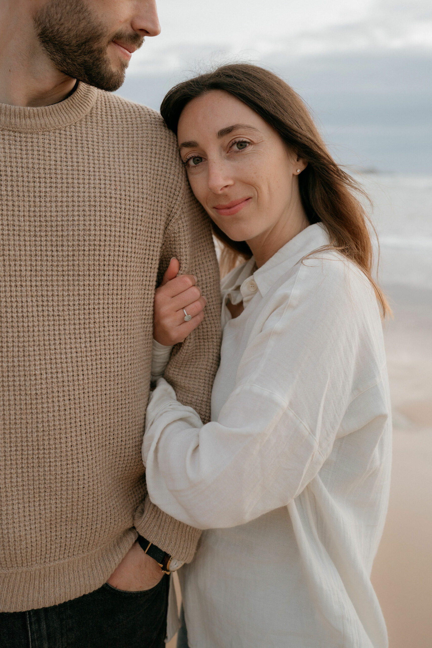 Vent et mer accompagnent cette séance couple sur la Côte Sauvage à Quiberon