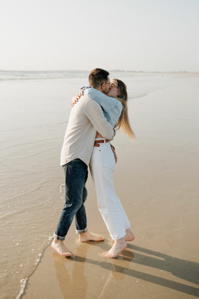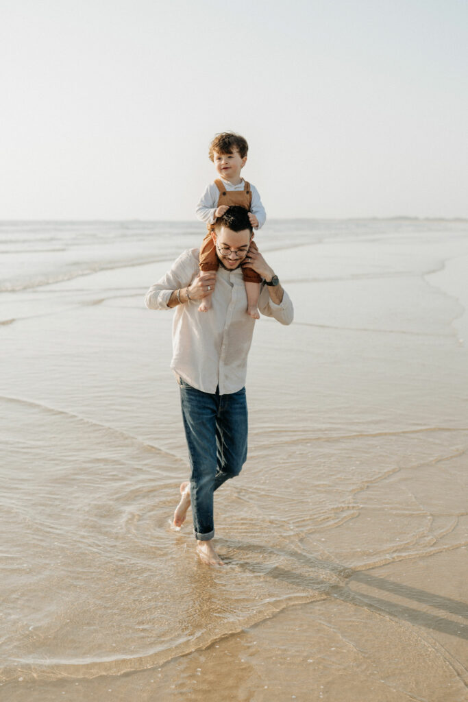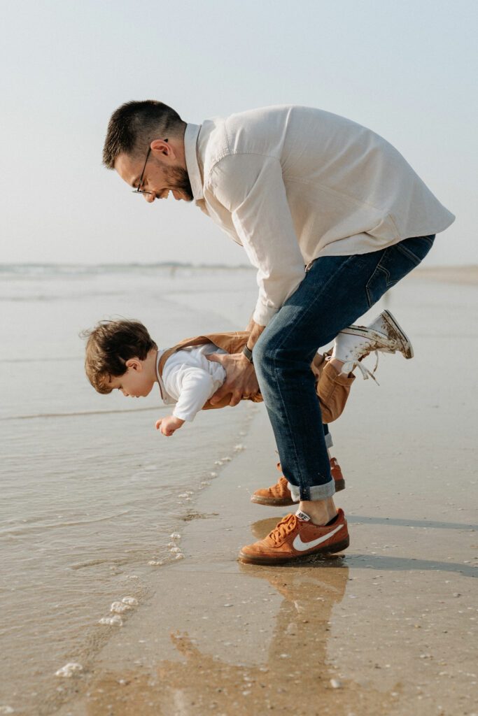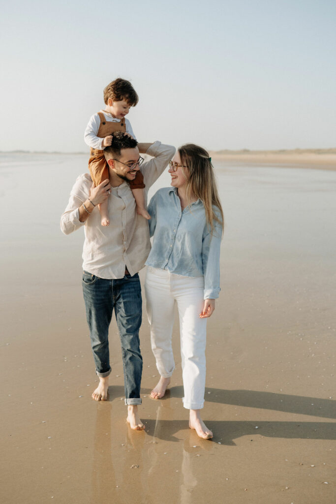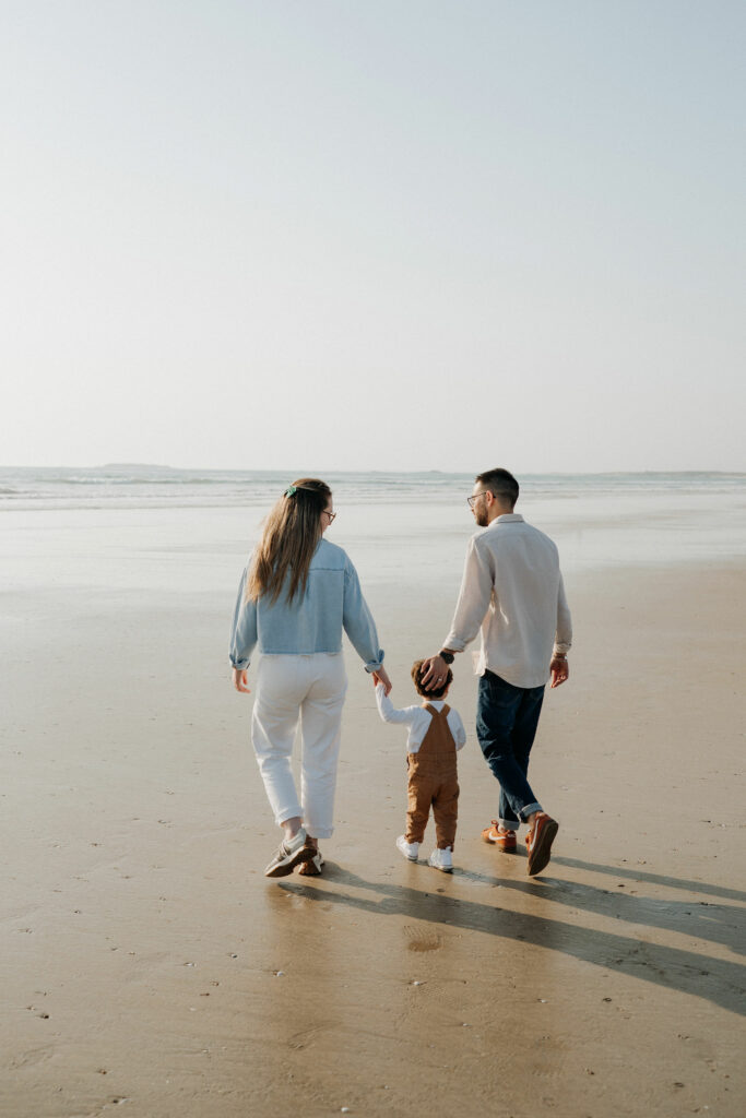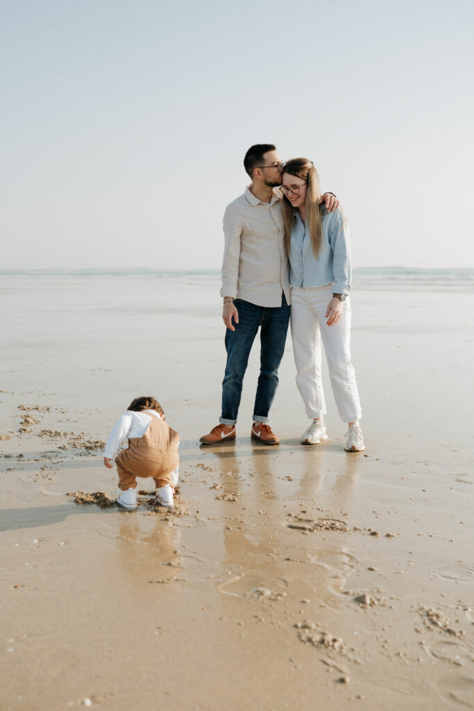 Au cœur du Morbihan, à quelques kilomètres de Vannes, la plage de la Guérite à Plouharnel offre un cadre magnifique pour des séances photo en famille. C’est dans ce décor naturel, entre sable, lumière dorée et eau peu profonde, que j’ai retrouvé une famille pour une séance pleine de douceur et de spontanéité.