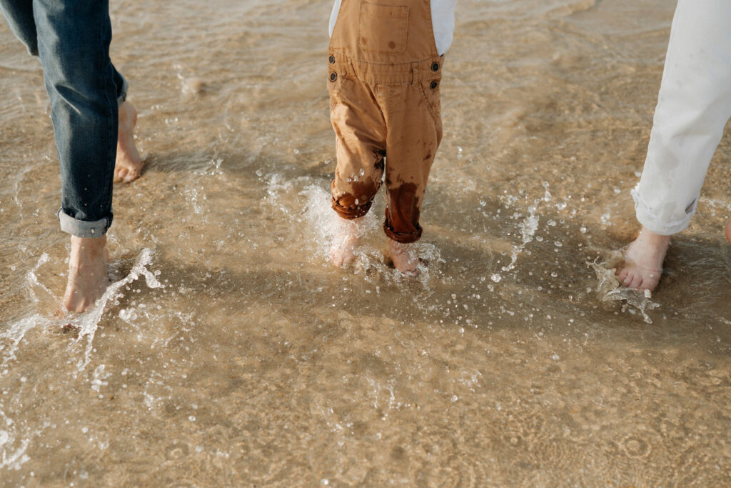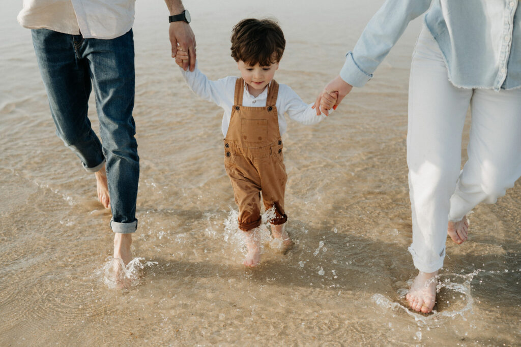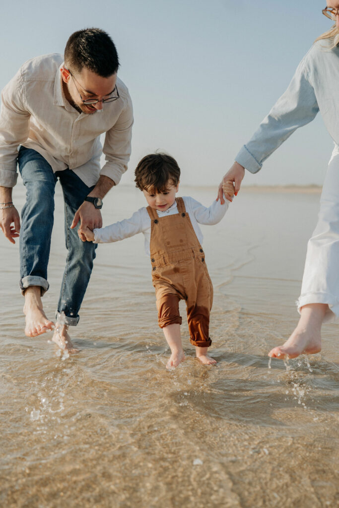 Séance photo famille à Plouharnel : un moment simple et joyeux les pieds dans l’eau
