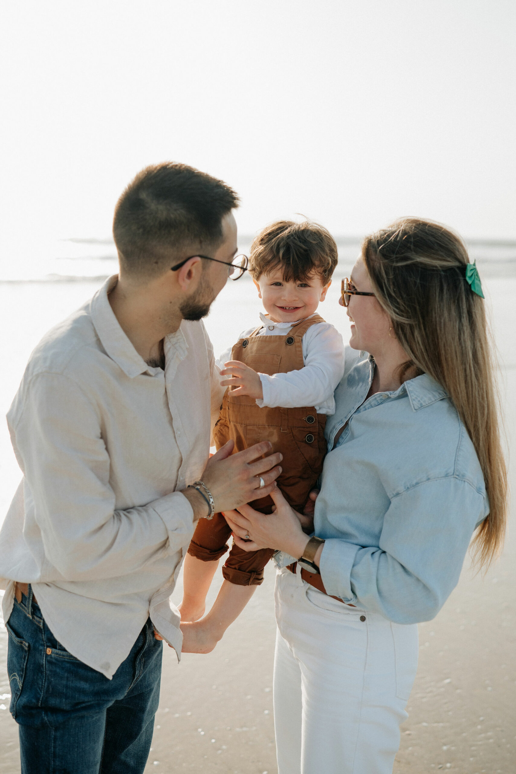 Mère embrassant son enfant dans la lumière dorée d’un soir à Vannes