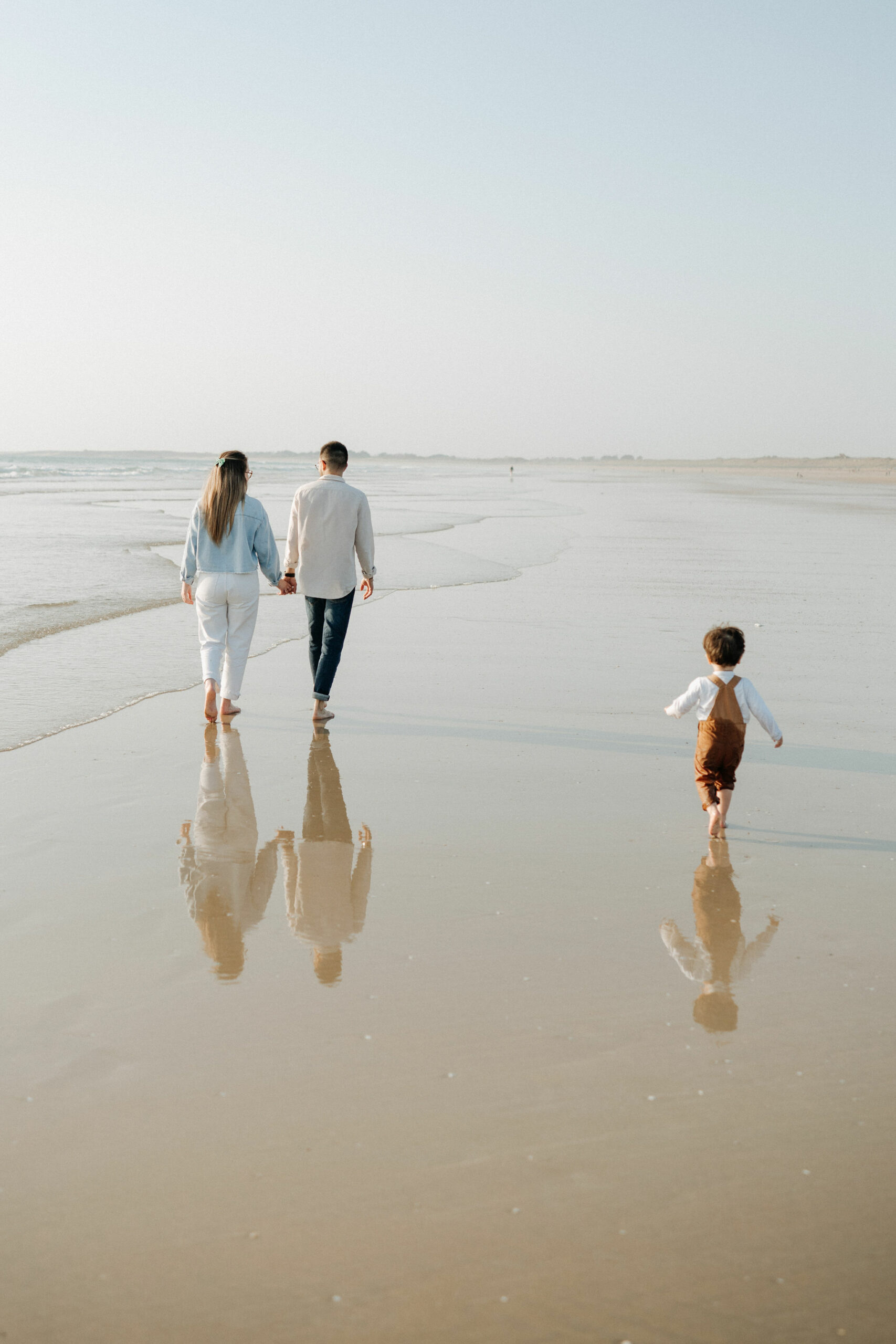 Enfant et parents dans l’eau, moment authentique à Plouharnel